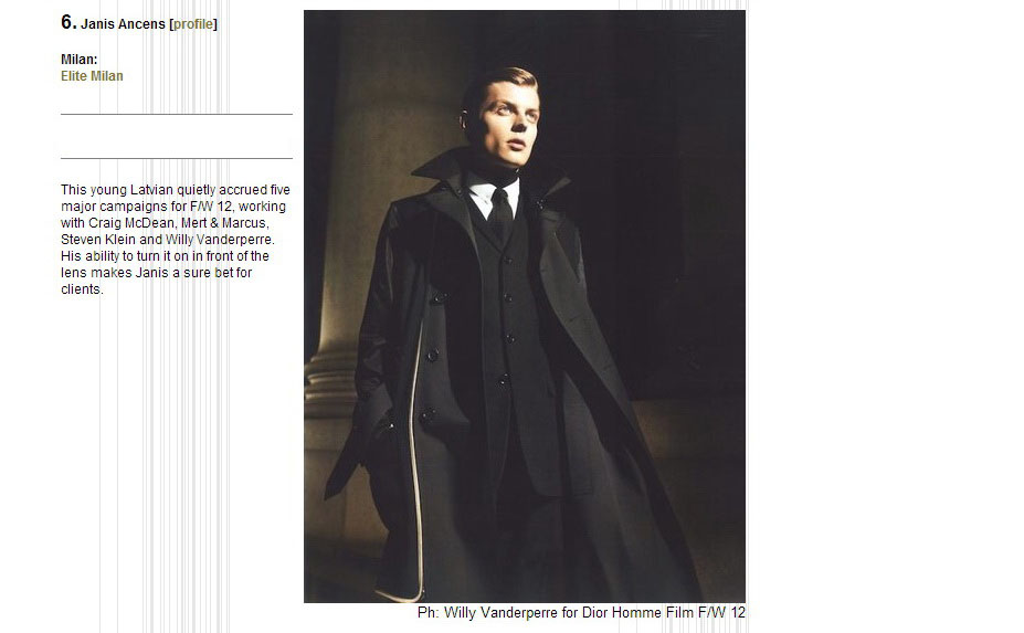 Attitude Models' JANIS ANCENS jumps to no.6 in Top 50 Male Models Worldwide!